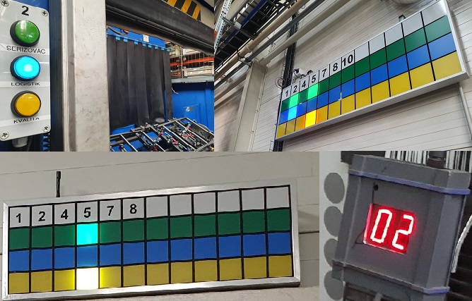 Vysílací jednotky jsou umístěny na jednotlivých pracovištích po celé hale a mají za úkol usnadnit a zrychlit výrobní procesy. Pokud se vyskytne pracovníkovi